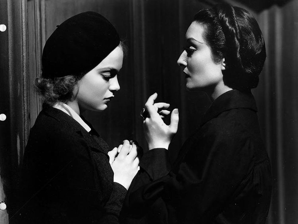 Following on Carmilla’s heels, the tradition of lesbian overtones in vampire tales first made it to screen with 1936’s Dracula’s Daughter. Rare in that the subject matter even got showcased in advertising (“Save the Women of London From Dracula’s Daughter” reads one tagline), the film also followed in the footsteps of Bram Stoker in presenting vampires as predatory monsters luring victims to same-sex temptations. In one notable scene, Countess Zaleska, played by Gloria Holden, seduces model Lili. Censors at the time gave instruction to avoid “suggestion of perverse sexual desire on the part of Marya,” but plenty of critics at the time saw what was at play.