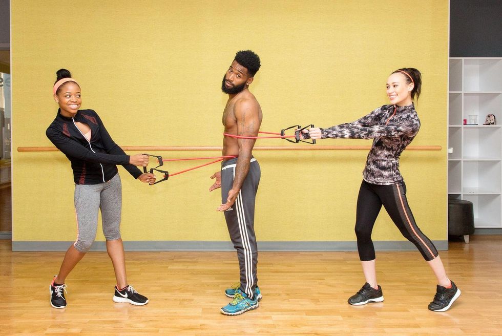 Working out can be a real doozy, but two sure-fire ways to effectively get after that revenge body are to (1) bump some tunes and (2) ask a total babe to take his shirt off and coach you through it.